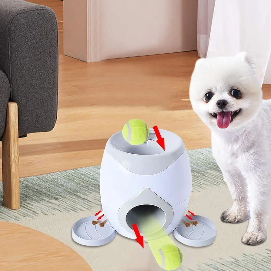 عملکرد دستگاه: این دستگاه دارای ۲عدد توپ میباشد و دارای مخزن تشویقی و ۲ عدد ظرف غذا در کناره های دستگاه ،هر بار که سگ توپ را در دستگاه به طور درست قرار دهد به عنوان جایزه مقداری تشویقی در ظرف ها میریزد که این امر باعث افزایش ضریب هوشی سگ شما میباشد،محصولی بسیار جذاب و بسیار بسیار سرگرم کننده برای سگ هایی که اوقات زیادی تنها در خانه هستند ،هم اکنون این محصول جذاب در فروشگاه با با بهترین قیمت موجود شده و میتوانید سفارش دهید